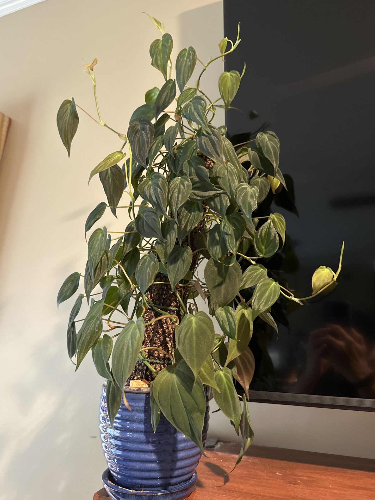 Mouse crèche on sheet moss on wooden log, with fairy LED lights and small spruce cones and liquid amber pods. I purchased the nativity scene last year at the Oakland Museum White Elephant Sale and made a tableau for it using Mosser Lee’s sheet moss which I cut with scissors and laid it on a cardboard circle on the section of a cedar log, which is about 16” in diameter. The Mosser Lee moss is easy to work with, and I kept it green all holiday long by misting it occasionally with water.